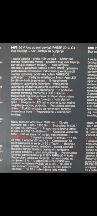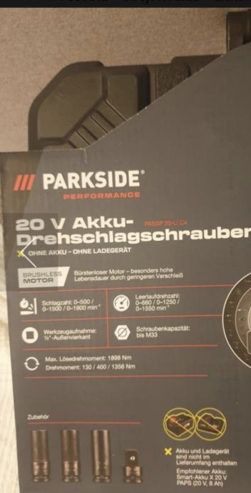 AKU UDARNI ODVIJAČ PARKSIDE PERFORMANCE PA SSP 20 Li C4 20 V / 1898 Nm