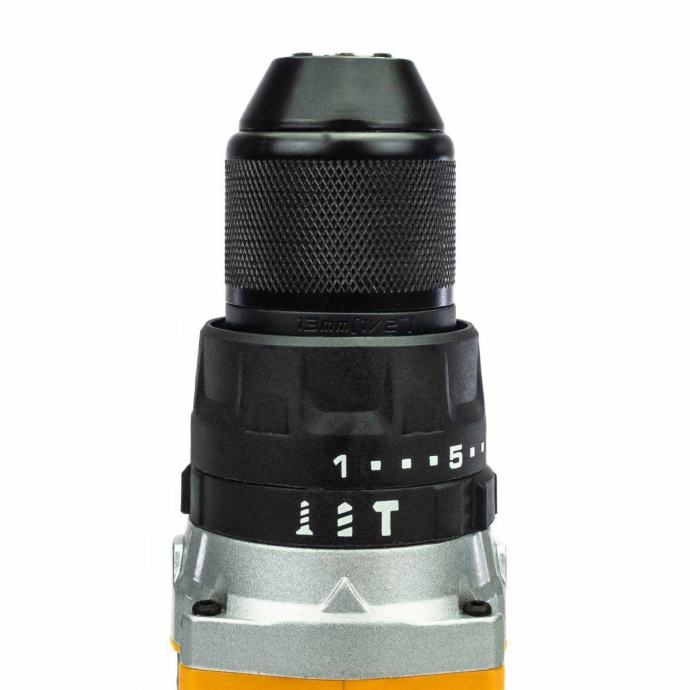Brzostezna glava od 13 mm omogućuje brzu promjenu bitova, dok ugrađeno LED svjetlo poboljšava vidljivost u uvjetima slabog osvjetljenja.