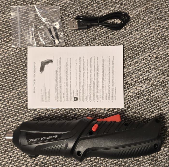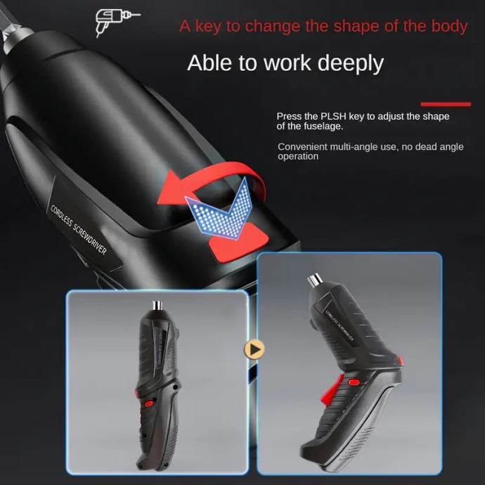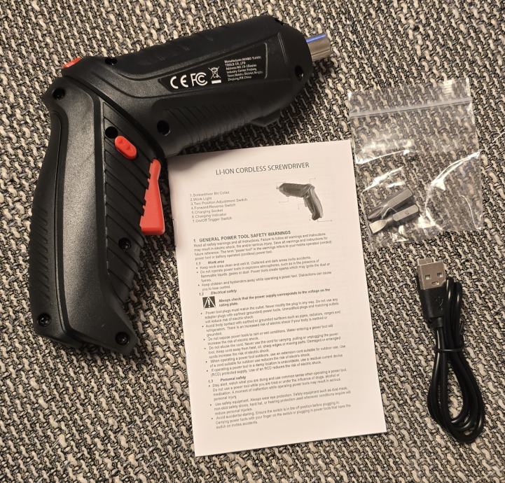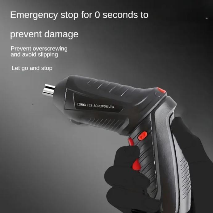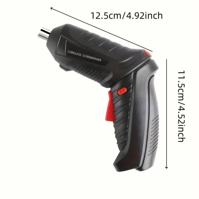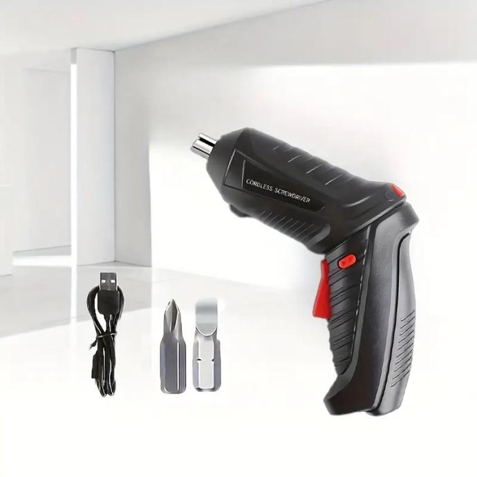 Osvijetljeni, svestrani crno-crveni električni odvijač s LED svjetlom - bežični, punjivi preko USB-a, motor visokog zakretnog momenta za sva okruženja