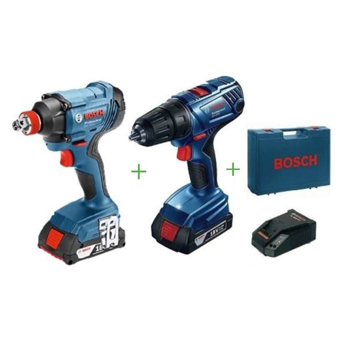 Set alata koji sadrži udarni stezač GDX 180-LI i aku bušilicu GSR 180-LI, dva akumulatora 1,5Ah, punjač GAL 1820 CV i kovčeg.