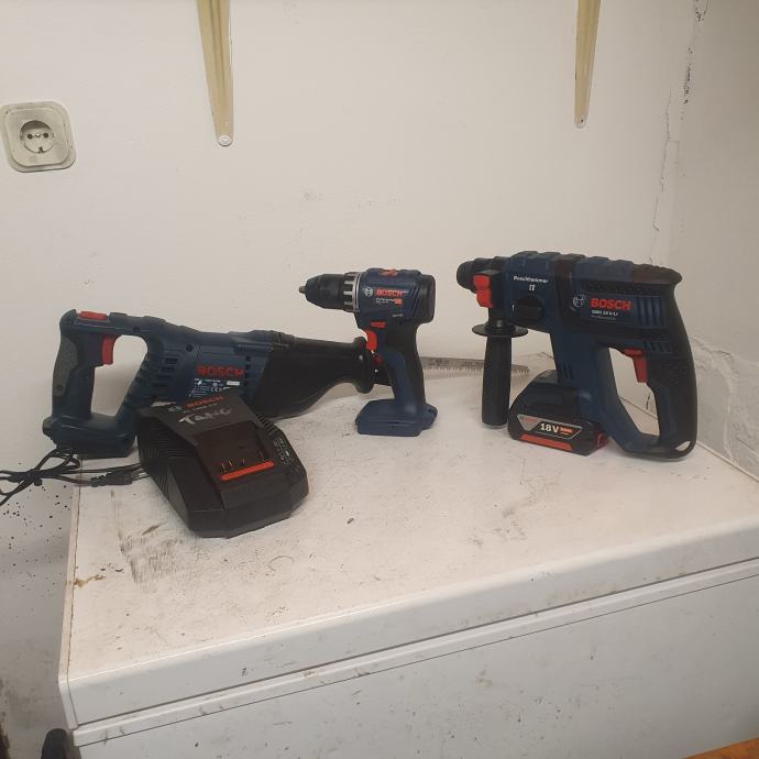 Na prodaju Bosch Professional set akumulatorskih mašina koji se sastoji od sabljaste pile, sds udarne bušilice, aku bušilice i brzog punjača s aktivnim hlađenjem.