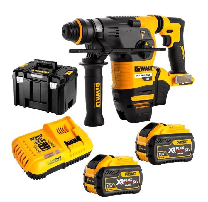 Ovaj DeWalt bušači čekić se isporučuje u setu s 2 akumulatora 54V kapaciteta 9,0Ah. Sve zajedno u koferu. DCH333 sa svojim motorom bez četkica se pokazao kao odličan izbor alata za bušenje i štemanje (manji obujam posla). Namjenjen je za udarno bušenje u tvrdim materijalima kao što su beton, cigla, blok, kamen. Tri načina rada - bušenje, udarno bušenje i štemanje (klesanje). Brz napredak bušenja zahvaljujući optimalno usklađenom elektro-pneumatskom mehanizmu čekića