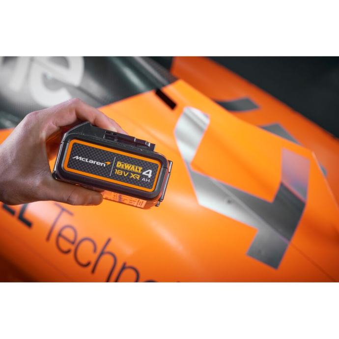 DCD85MM2T je profesionalna aku bušilica koja se u ovom setu isporučuje s dva akumulatora kapaciteta 4,0Ah i brzim punjačem. Ovo je limitirana serija – izdanje McLaren F1 Team u crnoj boji s dodatnom zaštitiom od kemikalija i masti. Projektirana za profesionalnu izvedbu brushless udarna bušilica isporučuje snagu i brzinu potrebnu za teške primjene bušenja i pričvršćivanja. Svakako možemo reći da je jedan od jačih modela iz DeWalt asortimana. (90Nm) DCD85MM2T je naša najnovija i najsnažnija dvobrzinska udarna bušilica – odvijač bez četkica koji isporučuje do 90 Nm okretnog momenta u kompaktnom tijelu od 177 mm, dizajniran da vam pruži najbolje performanse na najtežim poslovima. 2 brzine i 15 postavki okretnog momenta daju vam vrhunsku kontrolu pri bušenju i zavrtanju. Ova lagana, dobro uravnotežena bušilica/odvijač napravljena je kompaktno kako bi korisnicima omogućila udoban rad u skučenim prostorima tijekom duljeg vremenskog razdoblja. Okretna LED lampica s 3 položaja dizajnirana je za poboljšanje vidljivosti u slabo osvijetljenim radnim područjima sa svoja 3 načina rada i do 70 lumena svjetline. Baterija: 18 V, XR Li-Ion