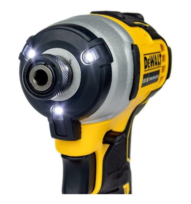 DCF809L2T je aku udarni odvijač koji dolazi u setu s dva akumulatora kapaciteta 3,0Ah i punjačem, sve zajedno u plastičnom koferu. Zahvaljujući kompaktnoj izradi i duljini od samo 131mm odlično će poslužiti u skučenim prostorima. Prednosti ovog aku udarnog odvijača su: Motor bez četkica – lako reguliranje i veća brzina vrtnje, veliki okretni moment, duže vrijeme rada i niža temperatura motora, manje dimenzije i stopa kvarova Elektronička kontrola brzine - prekidač koji vam omogućuje lagani odabir optimalne brzine za zavrtanje i odvrtanje Šesterokutni držač za bitove prihvata od 1/4 - šesterokutni nastavak od 6,35 mm sa zasunom jamči brzo i čvrsto pričvršćivanje bitova Kompaktan dizajn - moderan stroj s motorom bez četkica i udobnom ručkom ima izuzetno kratko tijelo Ručka s protukliznim premazom - opremljena i gumirana ručka osigurava sigurno držanje i poboljšava udobnost pri radu Čelična kuka za pojas - veća sloboda rada na ljestvama, skelama i u raznim položajima Svjetleći prsten s tri LED diode - maksimalna učinkovitost osvjetljavanja radnog mjesta bez bacanja sjene Višenaponski punjač – jedan uređaj za punjenje XR Li-Ion baterija Kompatibilnost s linijama XR i XR FLEXVOLT - uređaj je dio široke palete aku alata za učinkovit, profesionalan bežični rad TSTAK sistemski kovčeg – praktičan transportni kovčeg kompatibilan s drugim TSTAK-ovima za sigurno skladištenje i transport alata i pribora Napon baterije: 18V