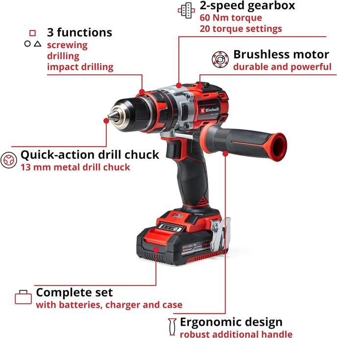 Einhell TE-CD 18 Li-i Brushless 60Nm akumulatorska udarna bušilica
