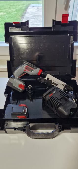Kress 180 ATBS aku šrauba za suhu gradnju,dvije baterije 4,2 Ah,brzi punjac i automat za vijke u redeniku,stanje dobro,sve ispravno
