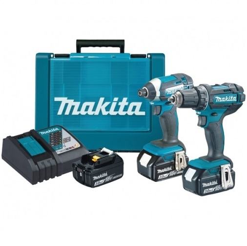 Akumulatorski set sadrži: bušilicu-odvijač DDF482Z udarni odvijač DTD152Z 3 komada baterija 18V 3.0Ah brzi punjač Dc18RC u kovčegu. Brzostezna glava
