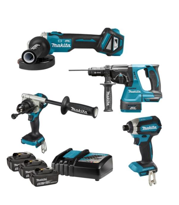 MAKITA DLX4158TJ Akumulatorski set orodja (DTD153+DHP486+DGA513+DHR243