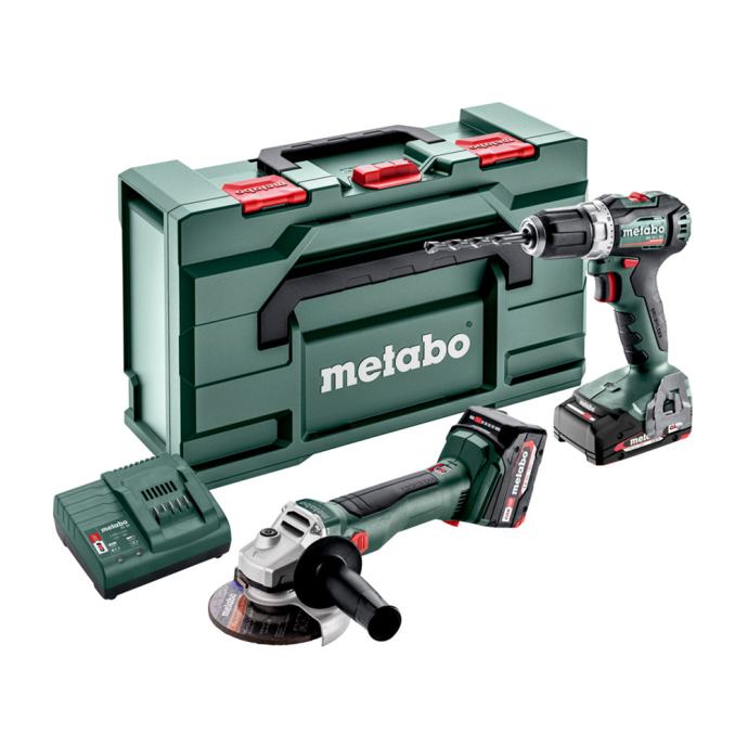 Set akumulatorskih alata koji sadrži bušilicu-odvijač BS 18 L BL, aku kutna brusilica W 18 L BL 9-125, 2 kom Li-ion akumulatora 18V 2,0/4,0Ah, punjač i MetaBOX.
