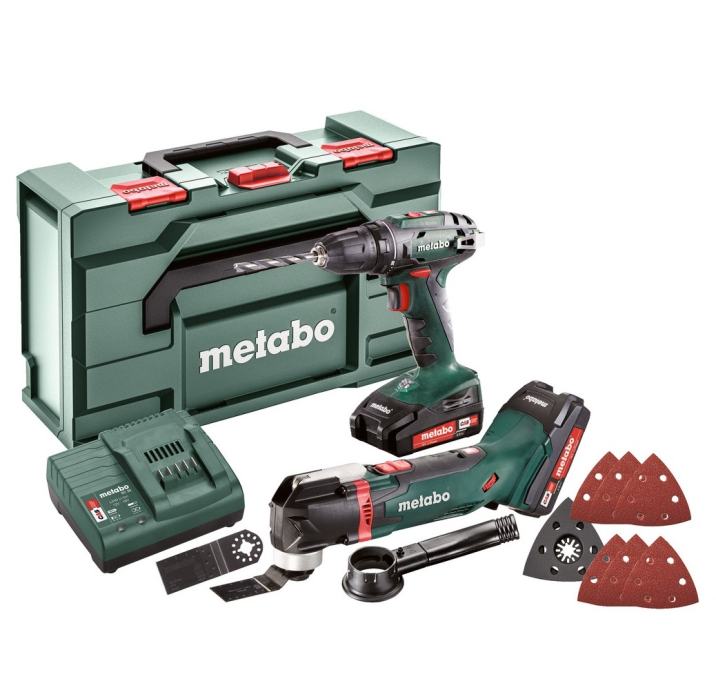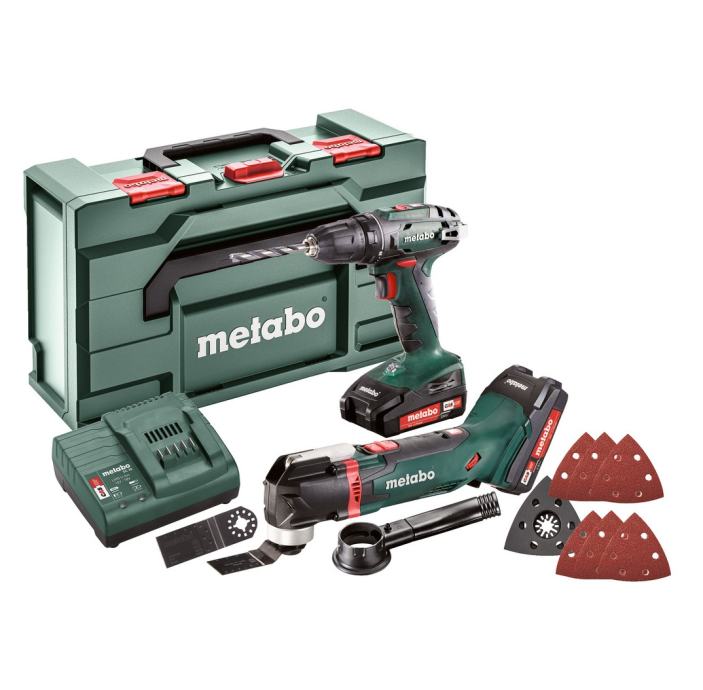 Metabo aku bušilica BS 18 Metabo aku multifunkcijski alat MT 18 LTX 2 Metabo akumulatora 18V 2,0Ah List uranjajuće pile 32 mm HSC (drvo) Trokutasta brusna ploča 93 mm