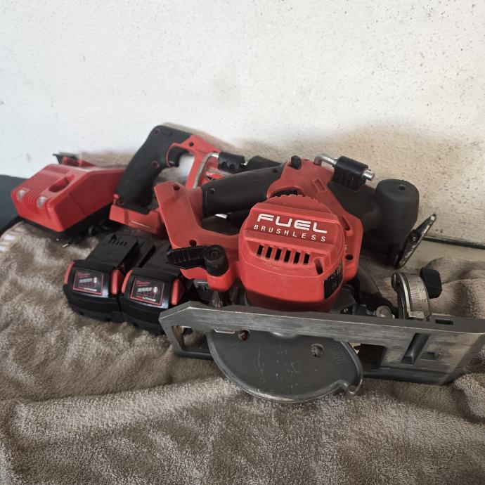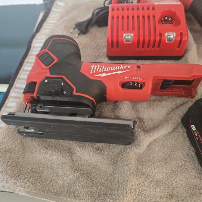 Milwaukee ubodna,pila, cilkulat, sabljarka, stemalica i multialat sveukupno ima 4 baterije i jedan punjac.