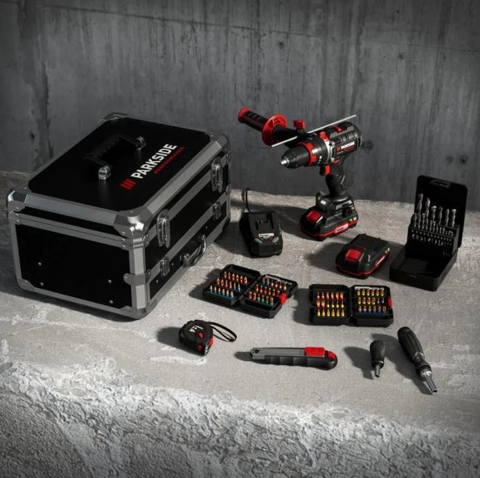 Parkside Performance aku 20V udarna bušilica 64Nm PSBSAP + baterije, pribor itd u alumiijskom kovčegu! (NOVO)
