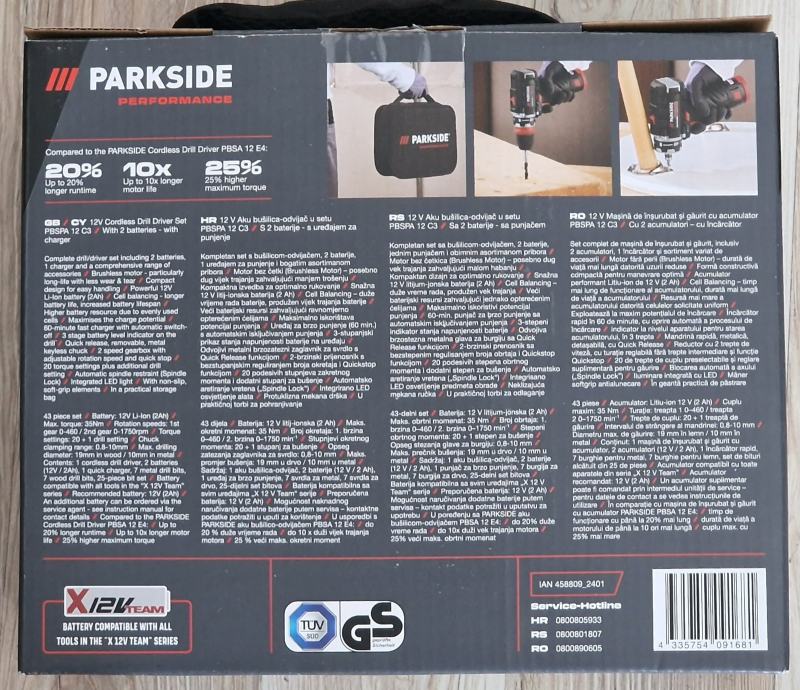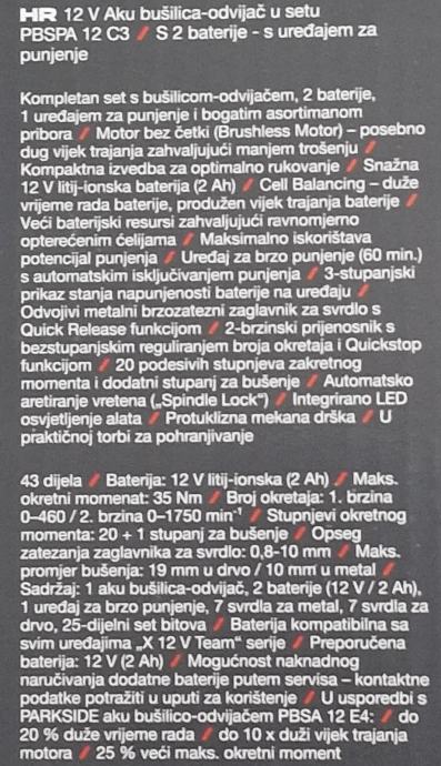 PARKSIDE PERFORMANCE PBSPA 12 C3 aku bušilica - NOVO i neupotrebljavano, Račun i garancija. Garancija je 5 godina...