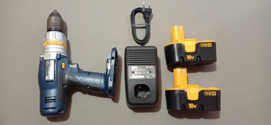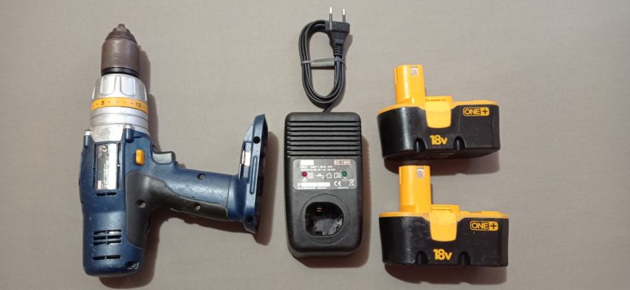 Akumulatorska bušilica Ryobi, sa punjačem BC-1800 i dvije baterije BPP-1817M, One+ 18V ,