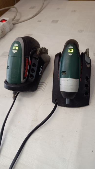 Prodaje se navedeni set alata .Dvoje ixo odvijači ,sa pripadajućim punjačima . Kod novijeg odvijača baterija je bolja ,dok kod starijeg modela malo slabija . Mogu se napuniti ,do kraja ,te sa malo poteškoća vršiti svoju funkciju . Također se prodaje i Bosch u kutiji sa punjačem aku bušilica ,koja solidno odrađuje svoj posao . Inače za sve navedene aku baterije ,možete naći na netu brdo oglasa za reparaciju baterija .Sisak