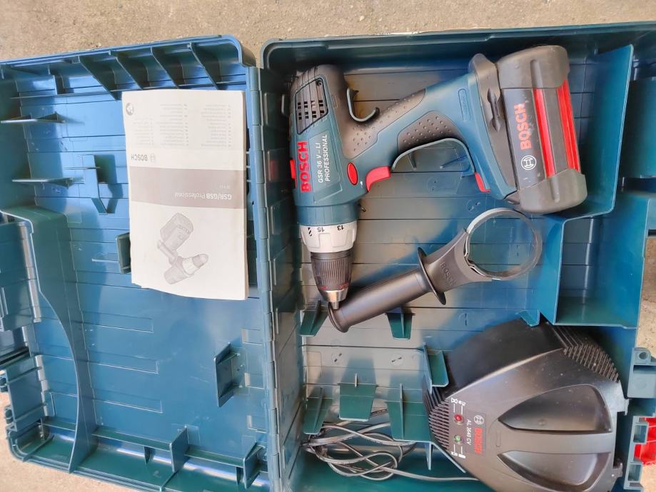 Prodajem šrauberica jake snage aku, marke Bosch, 36 V sa dvije baterije, punjače, dodatnom ručkom u koferu.