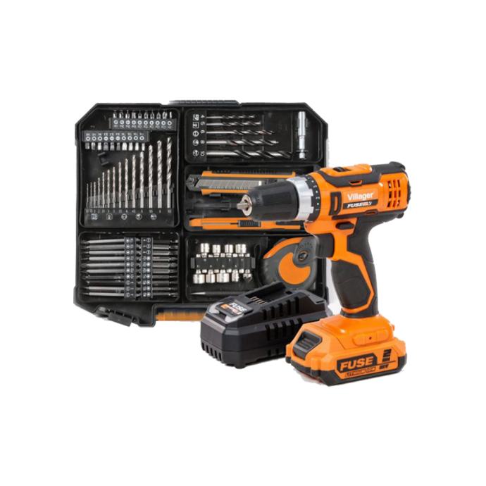 VILLAGER aku bušilica VLN 3220 FUSE 18V 2,0Ah kovčeg + 74 dj. set prib