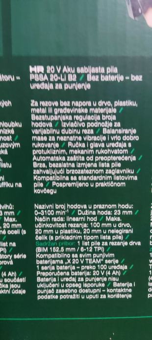 Prodajem aku sabljastu pilu parkside PSSA 20 Li B2 ,dolazi bez baterije i punjača u koferu!