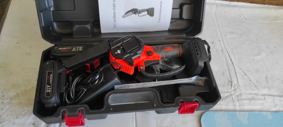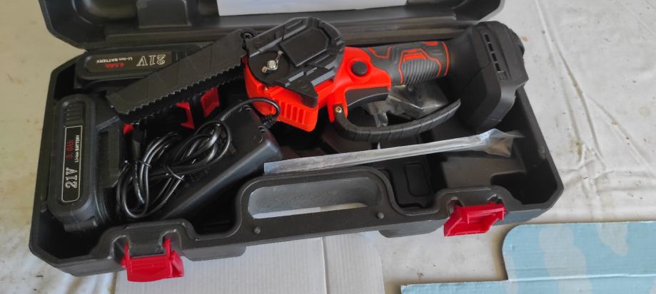 Prodajem aku PILU,sa dvije jake baterije i punjačem u koferu sa priborom i papirima,za 136 e.Isto i aku ŠKARE.sve je nekorišteno novo.Bruhles motor bez četkica ,pa tako dugo trajui rade.Cijena za škare po kom 131 e. Može i sve zajedno,ako netko treba.Moguca dobava produžerka za vočke vvca 1,5 m. velikog.Cijena po upitu.Moguče slanje poštom.Garancija kvalitete.Rezervni lanco i mač osigurani,kao i baterije.