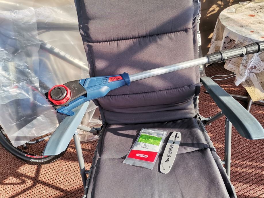 aku teleskopska pila +2 baterije+brzi punjač+rezervni lanci+vodilica