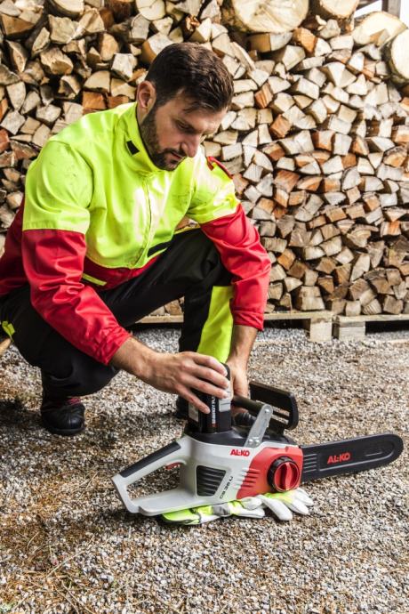 Visoki performansi rezanja, jednostavno rukovanje i održavanje, bez emisija i kabela za struju, E-pogon: To su AL-KO akumulatorske lančane pile s 36 V akumulatorom, univerzalnim izvorom energije za sve kompatibilne uređaje.