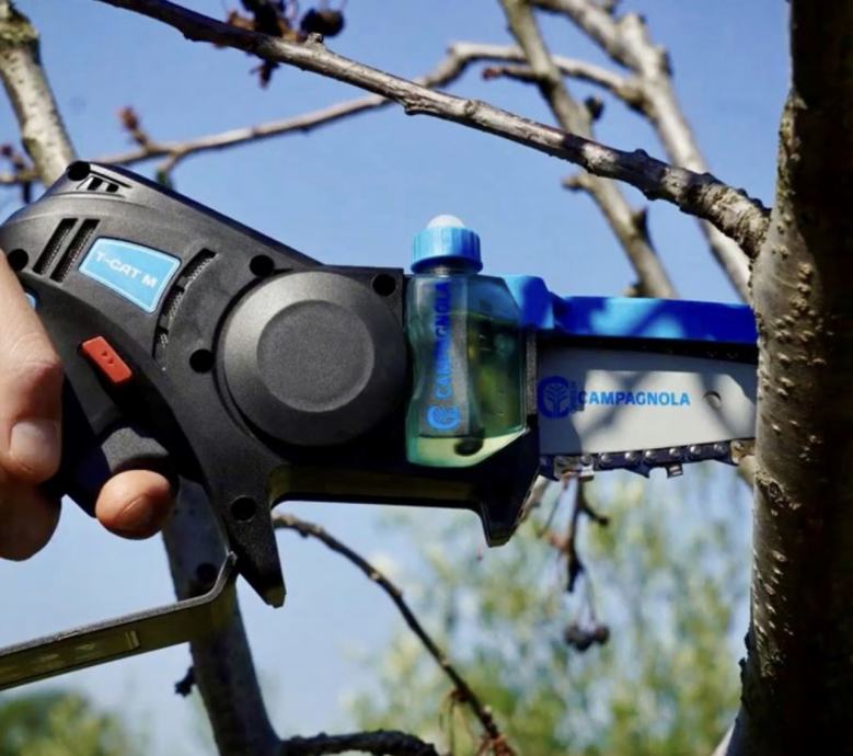 Nova aku pila T- CAT M sa spremnikom ulja za podmazivanje lanca dizajnirana je za brze i precizne rezove na malim granama u maslinicima i voćnjacima. Novo rješenje predloženo je kao neizostavan saveznik za one koji u svojoj opremi žele imati akumulatorsku lančanu pilu koja je lagana i kompaktna, ali i pouzdana. Nova T- CAT M pila može rezati grane s maksimalnim promjerom od 8 cm , bez neravnina. Njegova težina je samo 1.2 kg, uključujući litij-ionsku bateriju s nominalnim naponom od 14,4 V (16,8 V max..) i kapacitetom od 2,5 Ah. Autonomija rada baterije omogućuje do 90 rezova na granama maksimalnog promjera 6 cm. Karakteristike T-CAT M pile je motor bez četkica snage 500 W i lancem od 1/4'' s 29 karika, koji može postići brzinu od 7,5 m/s.