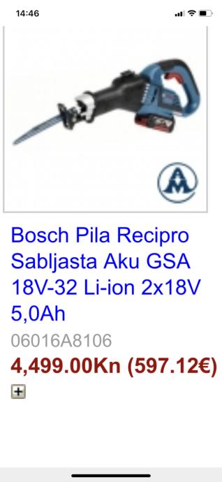 Bosch AKU pila RECIPRO AKU GSA 18V-32 Li-ion