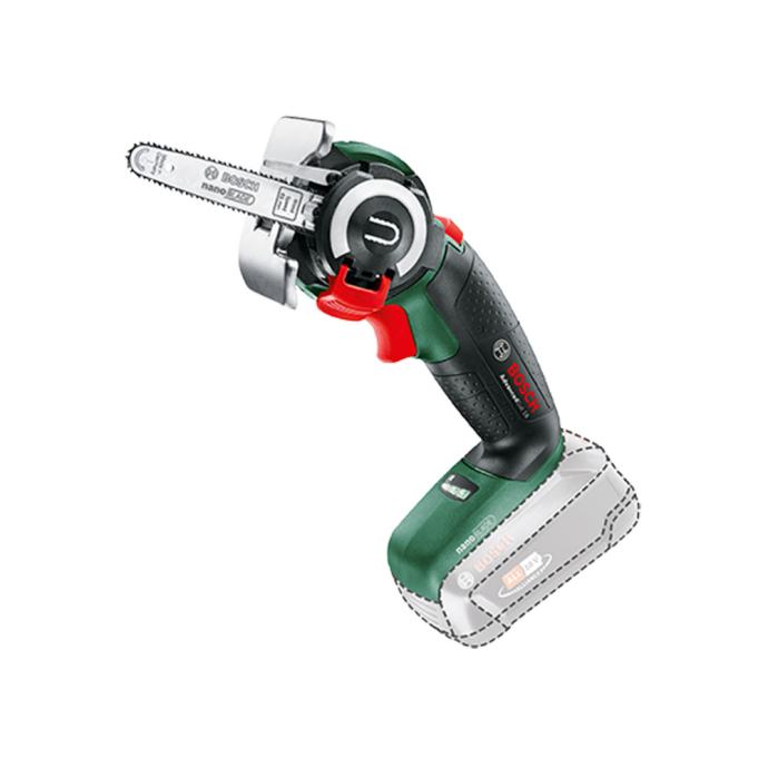 Snažno piljenje za lake rezove slobodnom rukom. NanoBlade tehnologija: precizno piljenje bez vibracija nikad nije bilo jednostavnije. Pilite jednostavno kroz različite materijale kao što su drvo i plastika, zahvaljujući snažnom EC motoru bez četkica. Kompaktan uređaj za lako upravljanje pri različitim namjenama u kući kao i izvan kuće. Nova tehnologija piljenja ne zahtijeva nikakvo održavanje, niti podmazivanje, zatezanje ili izoštravanje lista pile. Laka, sigurna i brza izmjena lista pile na jednostavan način, otvoriti poklopac, izmijeniti list pile i zatvoriti poklopac. Motor bez četkica osigurava brzo i dugotrajno piljenje uz dug životni vijek motora. Li-Ion akumulator omogućuje spremnost pile u svako vrijeme i na svakom mjestu. Tehnologija Bosch elektronike omogućuje preciznu kontrolu brzine rezanja gumbom okidača. Pričvršćena petlja omogućuje vješanje alata na grani ili na ljestvama tijekom primjene. POWER FOR ALL: jedan akumulator za sve sustave alata Home & Garden. Solo model – isporučuje se bez akumulatora i punjača