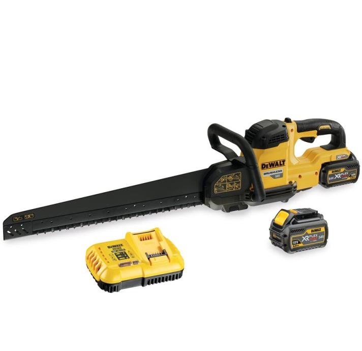 Nova litij-ionska baterija FLEXVOLT od 54 V omogućuje rad bežičnog alata. Idealno za rezanje glinenih blokova klase 20 (Poroton), Izdržljivi motor bez četkica velike snage za najteže primjene Dvije dugotrajne i izdržljive oštrice pile rade u suprotnim smjerovima tako da se materijal neće pomicati tijekom rezanja Kućište i ležajevi zaštićeni od prašine za veću izdržljivost Aluminijsko kućište mjenjača za manju težinu i izvrsnu izdržljivost Sustav za brzu i jednostavnu izmjenu oštrica s ugrađenim spremištem alata za manje zastoja Ergonomski dizajn s oblikovanom stražnjom ručkom i ručkom za bale za vrhunsko rukovanje i manje zamora Zaključajte prekidač za dodatnu sigurnost Napon 54 V Baterija FLEXVOLT 6.0Ah Brzina hoda bez opterećenja 2400 spm Duljina hoda 40 mm Duljina oštrice 43.0 cm Zaustavljanje oštrice 0.2 s Težina 6.5 kg Duljina 918 mm Visina 219 mm Vibracija šake/ruke 4,1 m/s2 Nesigurnost K 1 (vibracija) 1,5 m/s² Zvučni tlak 95 dB(A) Nesigurnost zvučnog tlaka 3 dB(A) Snaga zvuka 104 dB(A) Nesigurnost zvučne snage 5,6 dB(A)