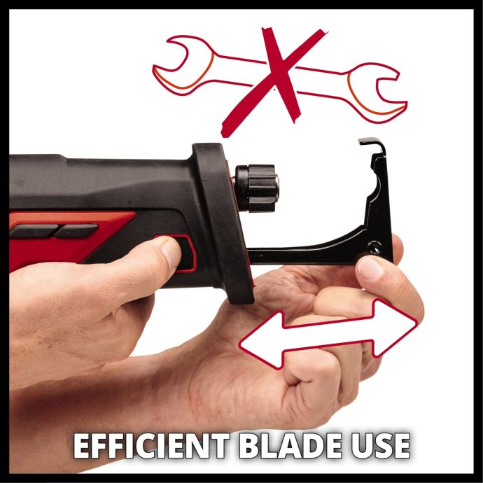 Einhell univerzalna akumulatorska pila TE-AP 18/26 Li - Solo savršena je za širok raspon primjena – bilo u radionici, u vrtu ili na gradilištu. Budući da je član obitelji Power X-Change sustava, PXC baterijski paketi mogu se koristiti u preko 200 različitih Einhell alata, čime se jamči sloboda bežičnog rada. Zahvaljujući antivibracijskoj funkciji, korisnici mogu udobno i ergonomski raditi s alatom čak i dulje vrijeme, budući da alat smanjuje vibracije tijekom rada. Osnovna ploča za rezanje je podesiva, što osigurava optimalnu iskoristivost lista pile. Dubina rezanja u drvo je 180 mm, u čelik do 12 mm. Za brži rad, list pile se može promijeniti bez potrebe za posebnim alatom. Meke površine za držanje osiguravaju ergonomsko rukovanje u svakom trenutku. Uređaj se isporučuje s jednim visokokvalitetnim listom pile (za drvo), koji impresionira iznimnim svojstvima rezanja. Punjiva baterija i punjač dostupni su zasebno, na primjer kao praktični starter set.