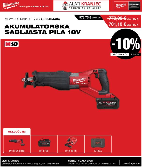 3000 pom/min s 32 mm duljinom pomaka za brzo i lako rezanje raznih vrsta materijala