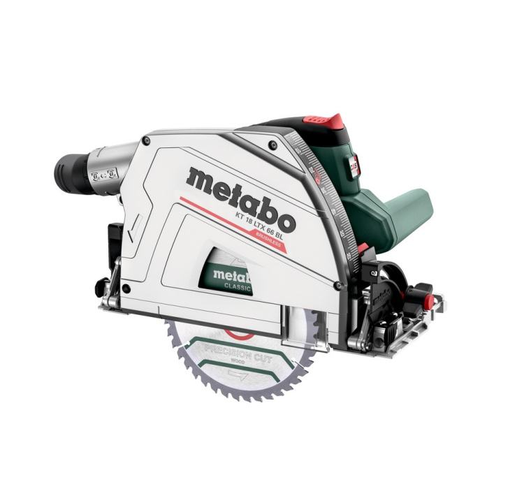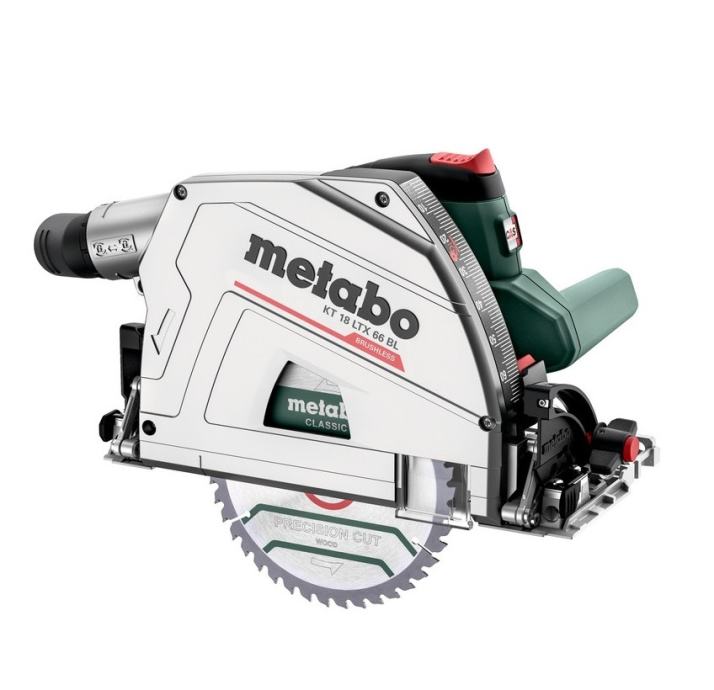 Metabo aku kružna pila KT 18 LTX je profi kružna pila s kapacitetom reza dubine 66mm (90°). Prva je akumulatorska pila s dubinom reza 66mm. Kompaktan dizajn i mala težina od 4,3kg pruža izvrsnu kontrolu i upravljivost uređaja. Opremljena je naprednim BL motorom bez četkica koji povećava učinkovitost alata i štedi bateriju. Podesiva montaža na razne vodilice. LIHD baterija visokih performansi i Metabo motor bez četkica garantiraju maksimalnu snagu i izdržljivo rezanje. Automatski mijenja brzinu rezanja prema uvjetima opterećenja za optimalan rad što znači da s obzirom na opterećenje pila povećava brzinu okretaja. Dvostruka vodilica za precizno podešavanje dubine rezanja sa i bez vodilice. Sa funkcijom podrezivanja za precizne prijelaze 0° i 45° položaj podesiv za najveću preciznost rezanja Rezanje uz zid moguće do 14 mm. Rezanje sa malo prašine zahvaljujući vrećici za prašinu velike zapremine ili spajanjem usisivača. Automatsko uključivanje/isključivanje priključenog usisivača zahvaljujući CordlessControl (dostupno kao dodatni pribor). Mlaznica za izbacivanje piljevine za bilo koju radnu poziciju može se pojedinačno rotirati i zaključati. Brza kočnica brzo zaustavlja list pile i poboljšava sigurnost. Brza i laka zamjena lista pile sa polugom za zaključavanje položaja uranjanja i zaustavljanja vretena. Praktična paralelna vodilica dostupna kao dodatni pribor (artikl broj 628029000) Uz metaBOX inteligentno rješenje za transport i skladištenje. Kružna pila KT 18 LXT se isporučuje bez baterije i punjača, u metaBOX 340 koferu