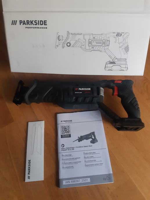 Sadržaj pila i dvije pilice bez baterije i punjača pakirano u kartonskoj kutiji bez kofera.