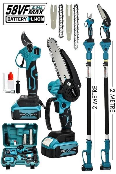 U kompletu sve s aku pilu. Baterijama Teleskopski štap: Opremljen teleskopskim štapom koji se može produžiti do max 2,5m, omogućujući vam dosezanje visokih grana ili teško dostupnih područja bez potrebe za ljestvama ili penjanjem.