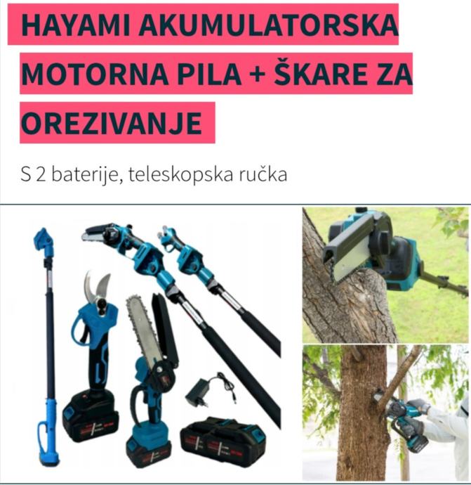 Aku pila+štapna pila+aku škare+štapne škare 2x Baterija NOVO! ZAGREB