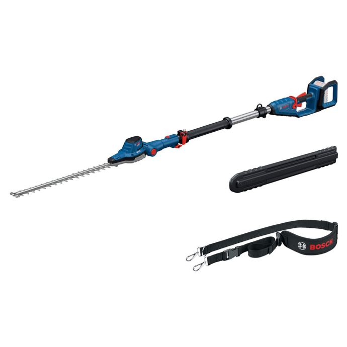Bosch GHE 18V-50 TP su snažne teleskopske akumulatorske škare za živicu, idealne za precizno i sigurno obrezivanje visokih živica i teško dostupnih grana. Zahvaljujući dužini alata od 2,5 metra i oštrom nožu duljine 50 cm, omogućuju jednostavno oblikovanje i održavanje zelenih površina bez potrebe za ljestvama. Ergonomski dizajn i uravnotežena težina olakšavaju rukovanje, dok snažan motor omogućuje brzo i čisto rezanje. Solo model – isporučuje se bez akumulatora i punjača