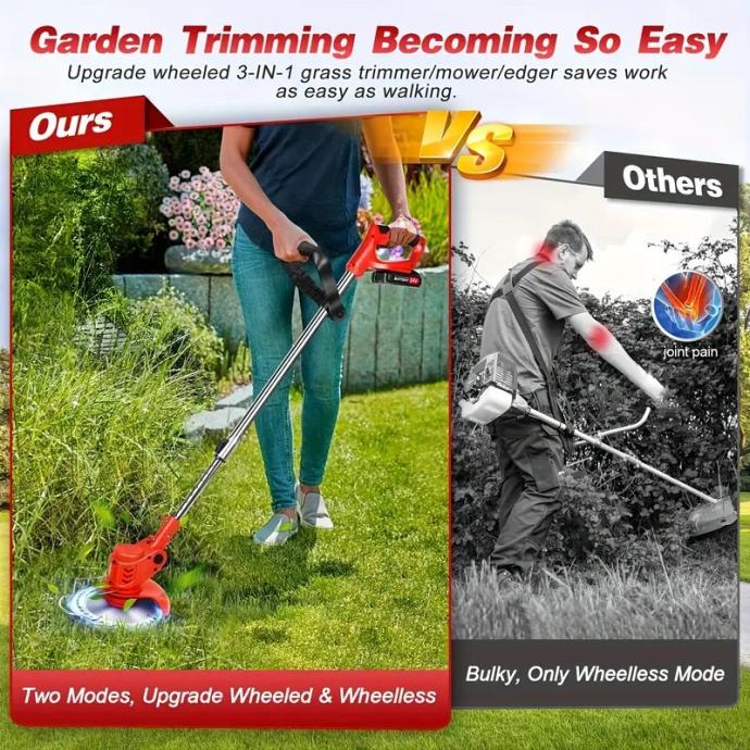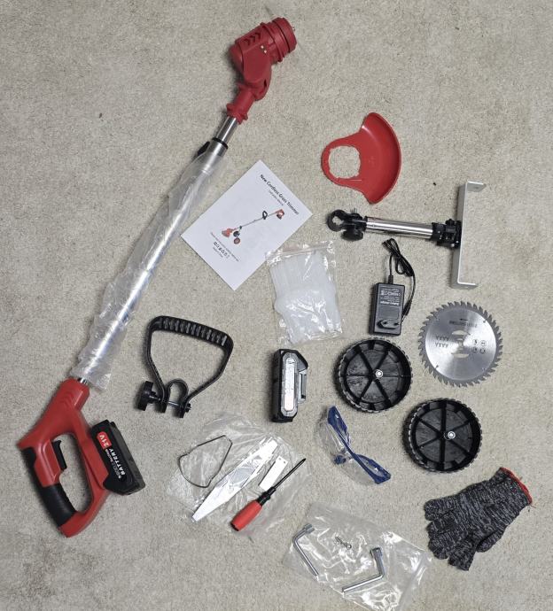 Prodajem potpuno novi bežični električni trimer za travu i korov, idealan za održavanje vrta i dvorišta. Uređaj je lagan, praktičan i jednostavan za korištenje, čak i na teško dostupnim mjestima.