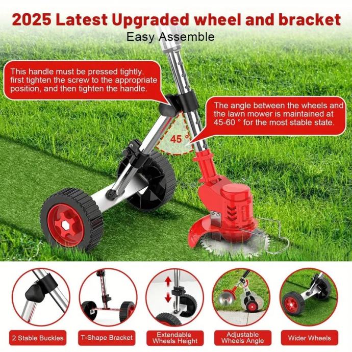 • Uključen specijalni nosač s kotačima za lakšu i precizniju košnju većih površina