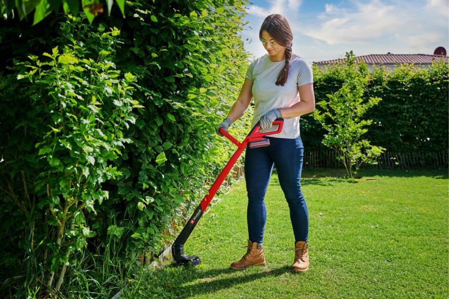 Einhell akumulatorski trimer za travu GC-CT 18/2411 Li P-Solo je lagani i ergonomski vrtni alat namijenjen preciznoj njezi travnjaka, posebno za rubove i teško dostupna mjesta gdje kosilica ne može doći. Dio je Power X-Change sustava, što znači da kompatibilan sa svim Einhell 18 V baterijama i punjačima iz iste linije. Trimer je opremljen rotirajućom glavom motora koja se može zakrenuti za 180°, olakšavajući košnju rubova. Dodatna ručka s mekim rukohvatom pruža sigurnost i udobnost pri radu. Kućište je izrađeno od izdržljive plastike otporne na udarce, a u isporuci dolazi 20 plastičnih noževa koji su lako zamjenjivi zahvaljujući stabilnom držaču. Idealna težina od samo 1,2 kg omogućuje dugotrajno i neumorno korištenje. Solo model – isporučuje se bez akumulatora i punjača