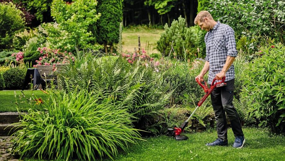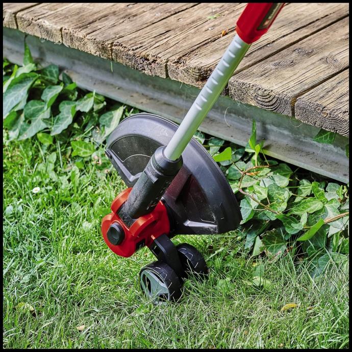 Einhell akumulatorski trimer za travu GE-CT 18/30 Li-Solo osigurava savršen travnjak. Bilo da se radi o rubovima, površinama, uglovima: ništa nije problem za Einhell pomoćnika u vrtu. Jednostavno, brzo i praktično uz teleskopsku ručku. Podesiva dodatna ručka osigurava ugodno rukovanje, mekani rukohvat nudi savršenu udobnost. Glava motora može se rotirati za 90° za okomite površine i rubove travnjaka. Uz uključeni kotačić za vođenje, moguće je precizno rezanje rubova. Također se može nagnuti u 3 položaja, osiguravajući fleksibilan rad ispod grmlja ili drugih prepreka. Flowerguard štiti biljke i drveće od oštećenja. Opseg isporuke uključuje špulu s reznom niti (5 m), automatski vrh osigurava udobno uvlačenje niti prema potrebi. Trimer za travu napaja baterija od 18 V iz serije Power X-Change. Baterije u ovoj obitelji sustava su međusobno zamjenjive.
