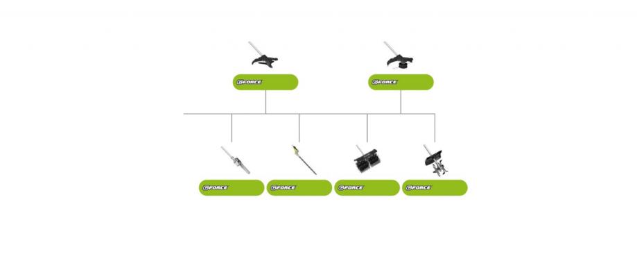 - adapterji kot dodatna oprema (motorna žaga, za obrezovanje žive meje, pometalna krtača, freza za zemljo-kultivator,....)