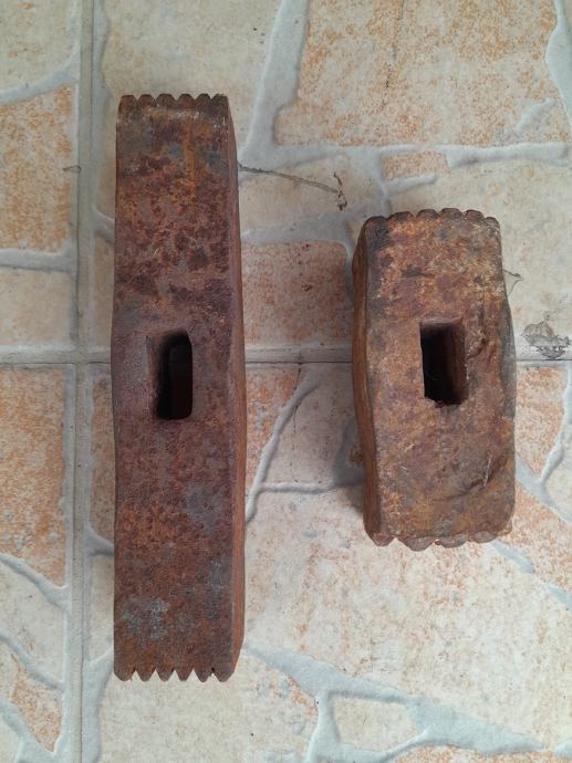 Prodajem dva nazubljena čekića,veći i manji,stanje kao na slici,bez drške,u kompletu za 15 eura,šaljem pouzećem na račun kupca