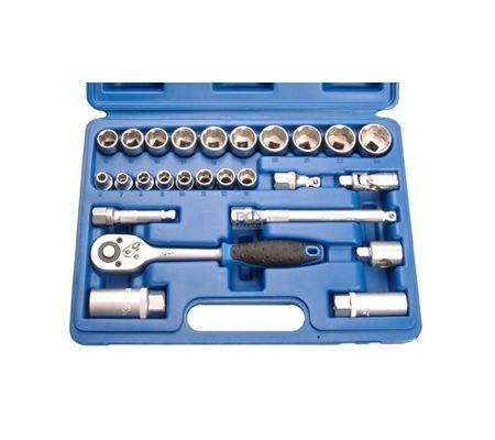 - izvedba "Super Lock" profil - 18 nasadnih ključeva 6-24 mm , kromirani - 3 - produžetka 45-75-150 mm - 2 ključa za svjećice 16 + 21 mm - 1 zglobni adapter - račna s brzom izmjenom - adapter 10 (3/8) -12.5 (1/2) Tehnički podaci