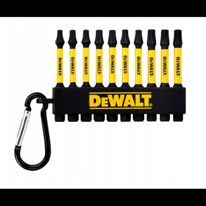 Set od 10 kom. EXTREME FLEXTORQ™ TORX zakretna udarna bitovi: T20 x3, T25 x4, T30 x3, duljina 57 mm, DeWALT. Sve je zapakirano na blister.Vrhovi imaju posebnu fleksibilnu torzionu zonu EXTREME FLEXTORQ™, koja smanjuje opterećenje vrha vrha i time smanjuje rizik od loma glave vijka.Vrh s ojačanom jezgrom nalazi se u posebnom pakiranju s karabinerom, zahvaljujući kojem se set može pričvrstiti izravno, npr. na remen.]]>