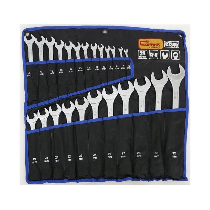 vrsta ključa: kombinirani ključCR-V krom-vanadij čelik: povećana otpornost na koroziju i deformacijebroj komada u setu: 24veličine: 6, 7, 8, 9, 10, 11, 12, 13, 14, 15, 16, 17, 18, 19, 20, 21, 22, 23, 24, 26, 27, 28, 30, 32 mmtežina: 4,3 kgdimenzije (visina/širina): 530/540 mmdimenzije pakiranja (V/Š/D): 145/360/75 mmprikladan set za trajno vješanje u radionici i za rad na terenu zahvaljujući smotanom listu s određenim mjestom za svaki ključset uključuje sve najčešće korištene veličine 6-32mmprstenasta strana ključa odvija odvrtanje šesterokutnih i šesterokutnih glava vijaka. Lagano je savijen za udobniji rad s ključem i bolji pristuptipke su obrađene mat premazom s poliranim glavama]]>