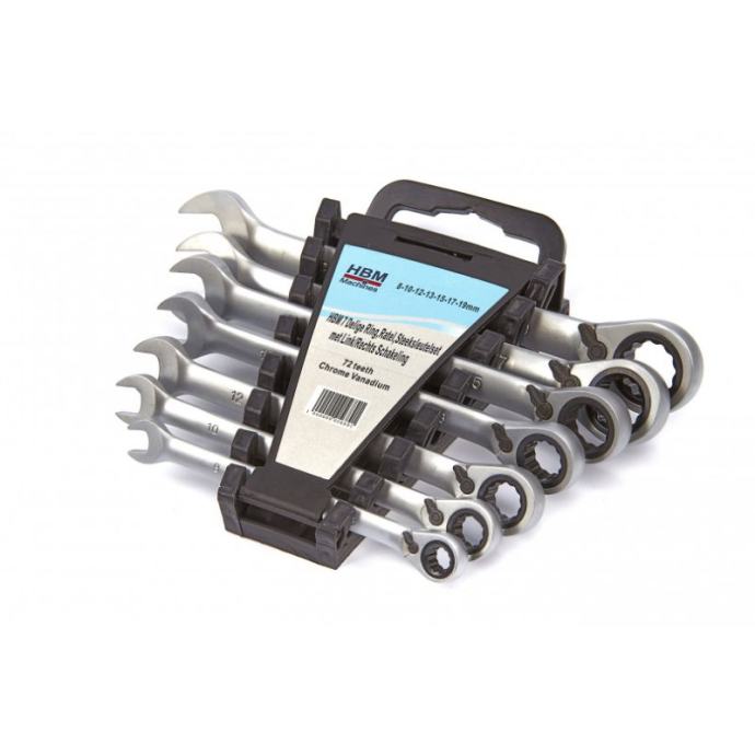 vrhunski CRV čelikisporučuje se u plastičnom blisteru za pohranu72 okreta zubaglava nagnuta za 15 stupnjeva za jednostavno popravljanjeza otpuštanje ili brzo stezanje s funkcijom začepljenjaprijenos velike snageudobno leži u ruci zbog profiliranog profila u osoviničeljusti naoštrene točno na širinu ključageometrija otporna na torziju s dvostrukim T profilomumetak za prsten i klin za zaključavanje mangan fosfat, vruće kovanset se sastoji od veličina 8 - 10 - 12 - 13 - 14 - 17 - 19 mm]]>
