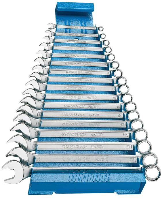 UNIOR set viljuškasto-okastih ključeva 6-22/17 dugi na metalnom stalku