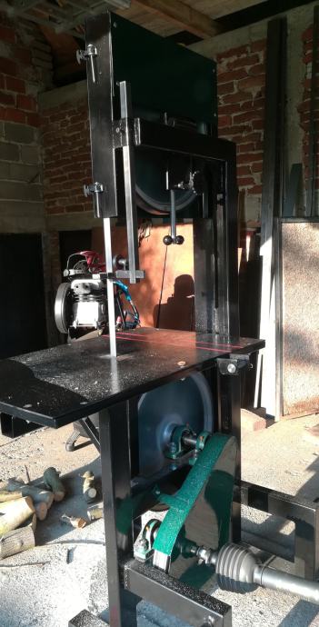 Prodajem banzek za piljenje drva. Kotači fi 550, pila 0.9mm, 4m. Tezina stroja oko 150kg, visina 2m