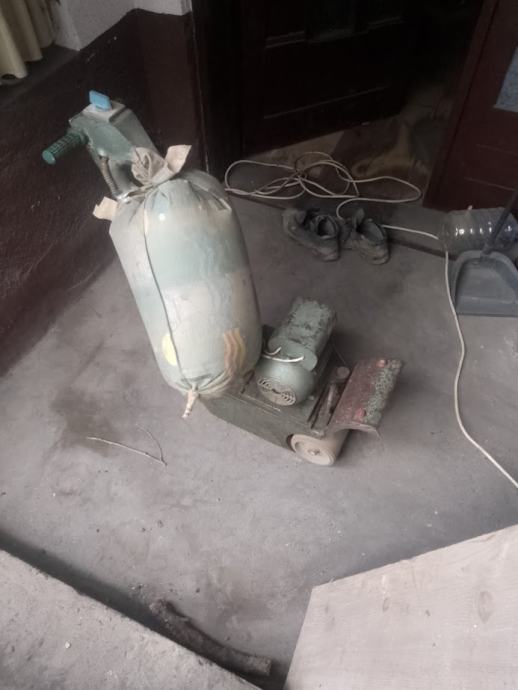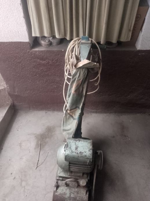 Brusilica za parket u dobrom stanju proizvođača "Oprema Vrbovec". Monofazna, masivna, rasklopiva za transport.