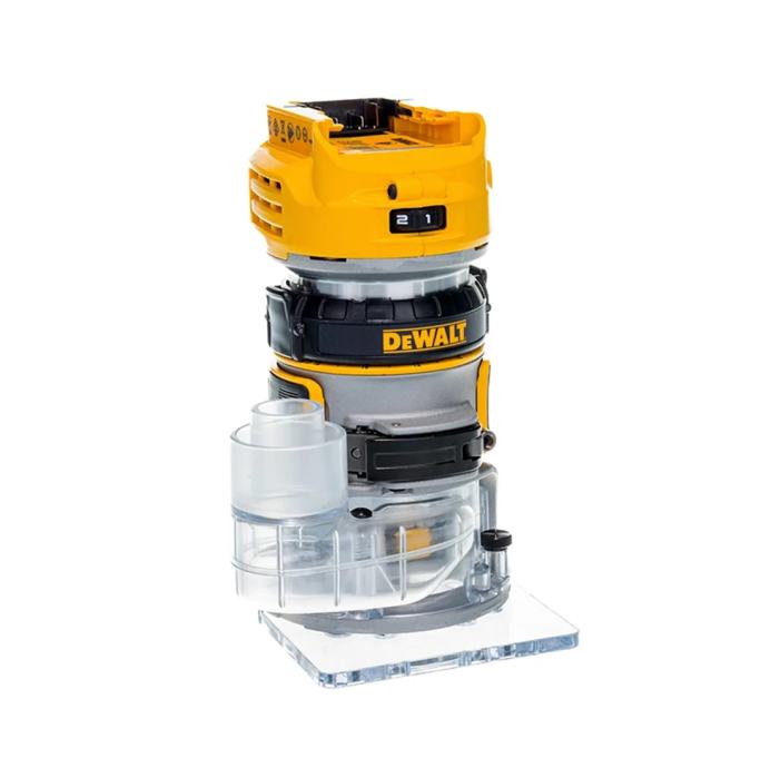 DCW600N DeWALT aku glodalica je alat za glodanje s jednom bazom i bez baterija i punjača temelji se na učinkovitom motoru bez četkica i 18V XR baterijskom napajanju. Meki start - Glatko pokretanje motora eliminira trzanje, a električna kočnica trenutno zaustavlja rezač, povećavajući sigurnost. Dvostruko LED osvjetljenje osigurava izvrsnu vidljivost oko glodala, a usisni modul omogućuje usisavanje gotovo 100% iskopanog materijala. Čvrsta aluminijska konstrukcija je izdržljiva i dobro pristaje uz modularne baze. Motor bez četkica – učinkovit, kompaktan i otporan na preopterećenje. Sustav elektroničke kontrole brzine - omogućuje optimalno podešavanje brzine za rad s različitim materijalima Elektronička kočnica - brzo zaustavljanje radnog dijela poboljšava sigurnost Paralelna vodilica i adapter za usisavanje prašine – profesionalni rad Kompaktan i lagan dizajn - ergonomskiji i udobniji rad i lakše skladištenje Blokada vretena - jednostavna zamjena pribora Isporuka bez baterija i punjača